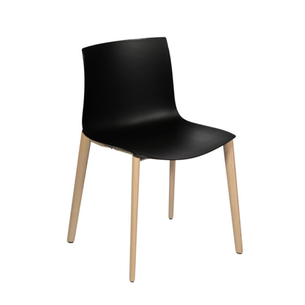 Der Catifa 46 Wood mit Sitzschale in schwarz kombiniert modernes Design mit natürlicher Wärme. Die glatte Sitzfläche aus Polypropylen sorgt für pflegeleichte Funktionalität, während das Gestell aus Holz jedem Raum eine warme, stilvolle Note verleiht.