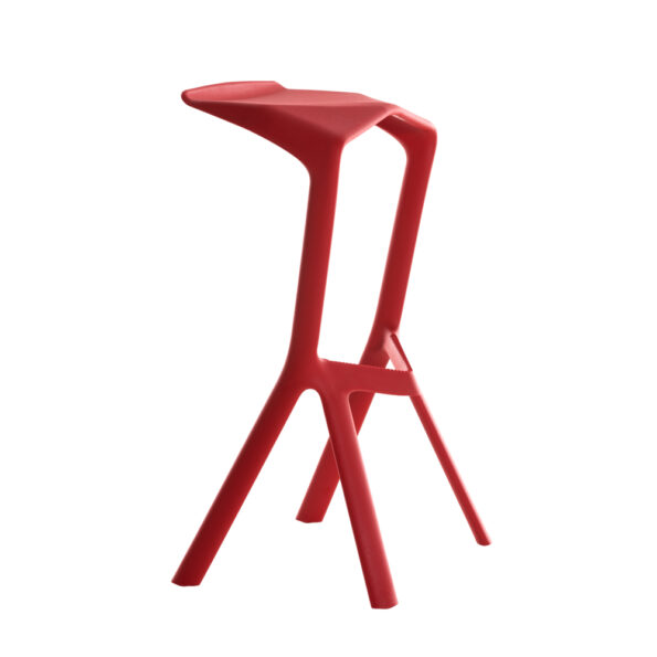 Stapelbarer Barhocker mit vier Beinen aus verstärktem Polypropylen in den Farben Schwarz, Weiß und Verkehrsrot. Durch ihr minimalistisches Design nehmen sie wenig Platz im Raum ein und sind sehr einfach in der Handhabung. Verstärktes Polypropylen – hohe Widerstandsfähigkeit, recycelbar – UV-beständig.