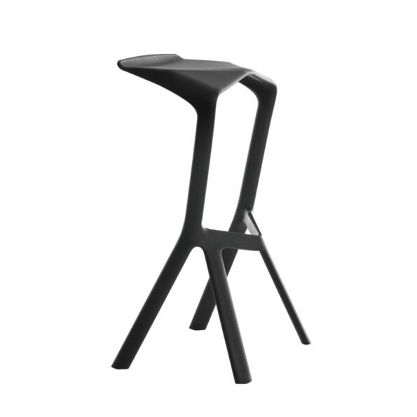 Stapelbarer Barhocker mit vier Beinen aus verstärktem Polypropylen in den Farben Schwarz, Weiß und Verkehrsrot. Durch ihr minimalistisches Design nehmen sie wenig Platz im Raum ein und sind sehr einfach in der Handhabung. Verstärktes Polypropylen – hohe Widerstandsfähigkeit, recycelbar – UV-beständig.