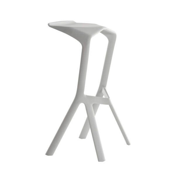 Stapelbarer Barhocker mit vier Beinen aus verstärktem Polypropylen in den Farben Schwarz, Weiß und Verkehrsrot. Durch ihr minimalistisches Design nehmen sie wenig Platz im Raum ein und sind sehr einfach in der Handhabung. Verstärktes Polypropylen – hohe Widerstandsfähigkeit, recycelbar – UV-beständig.