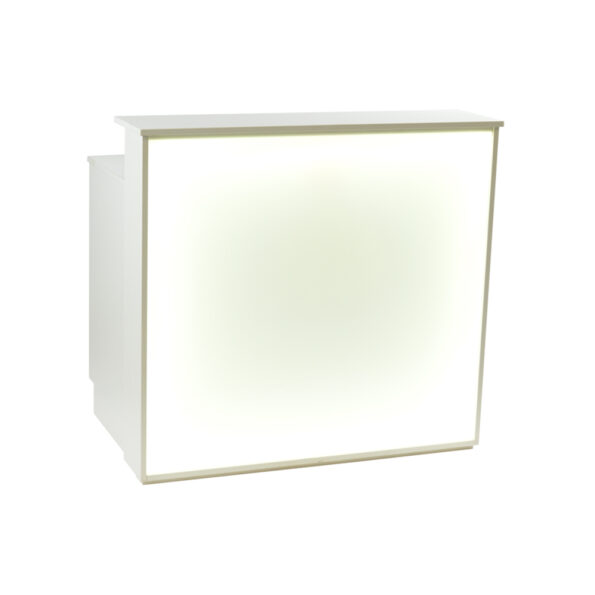 Die Theke Sonnenschein ist eine moderne und stilvolle Empfangstheke, die durch ihre helle, beleuchtete Front sofort ins Auge fällt. Mit ihrer klaren weißen Oberfläche und dem eleganten Design eignet sie sich perfekt für Messen, Veranstaltungen und Empfangsbereiche.